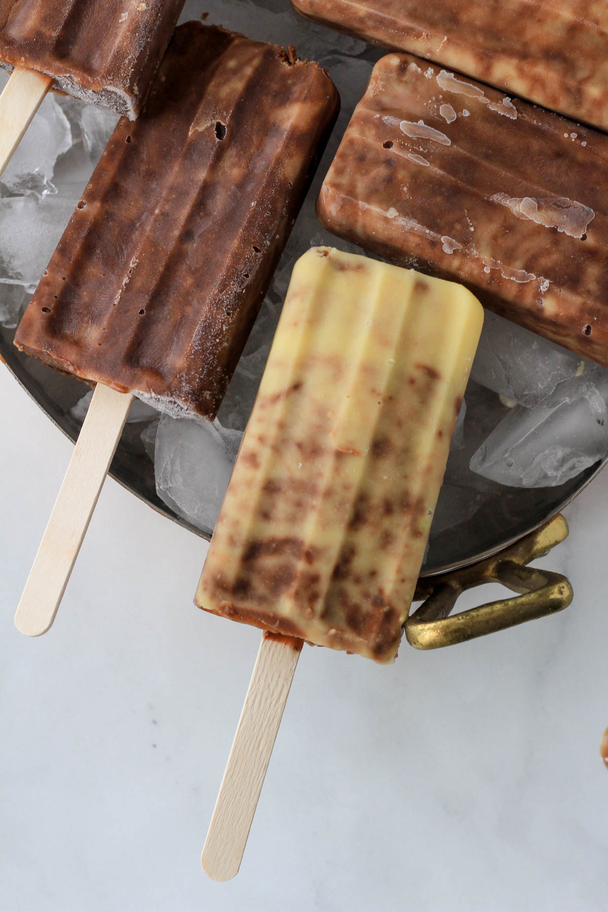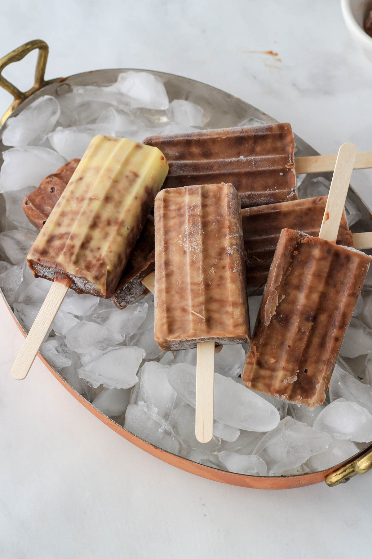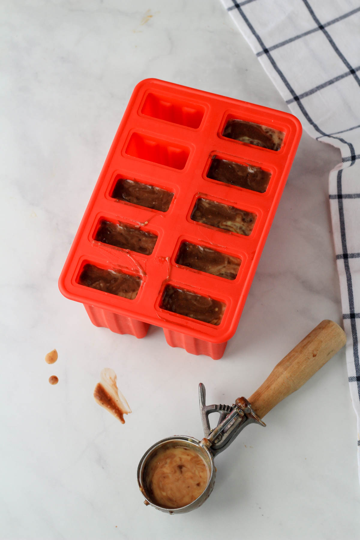 - Alternative method- Alternate small scoops of vanilla and chocolate pudding into the popsicle molds.