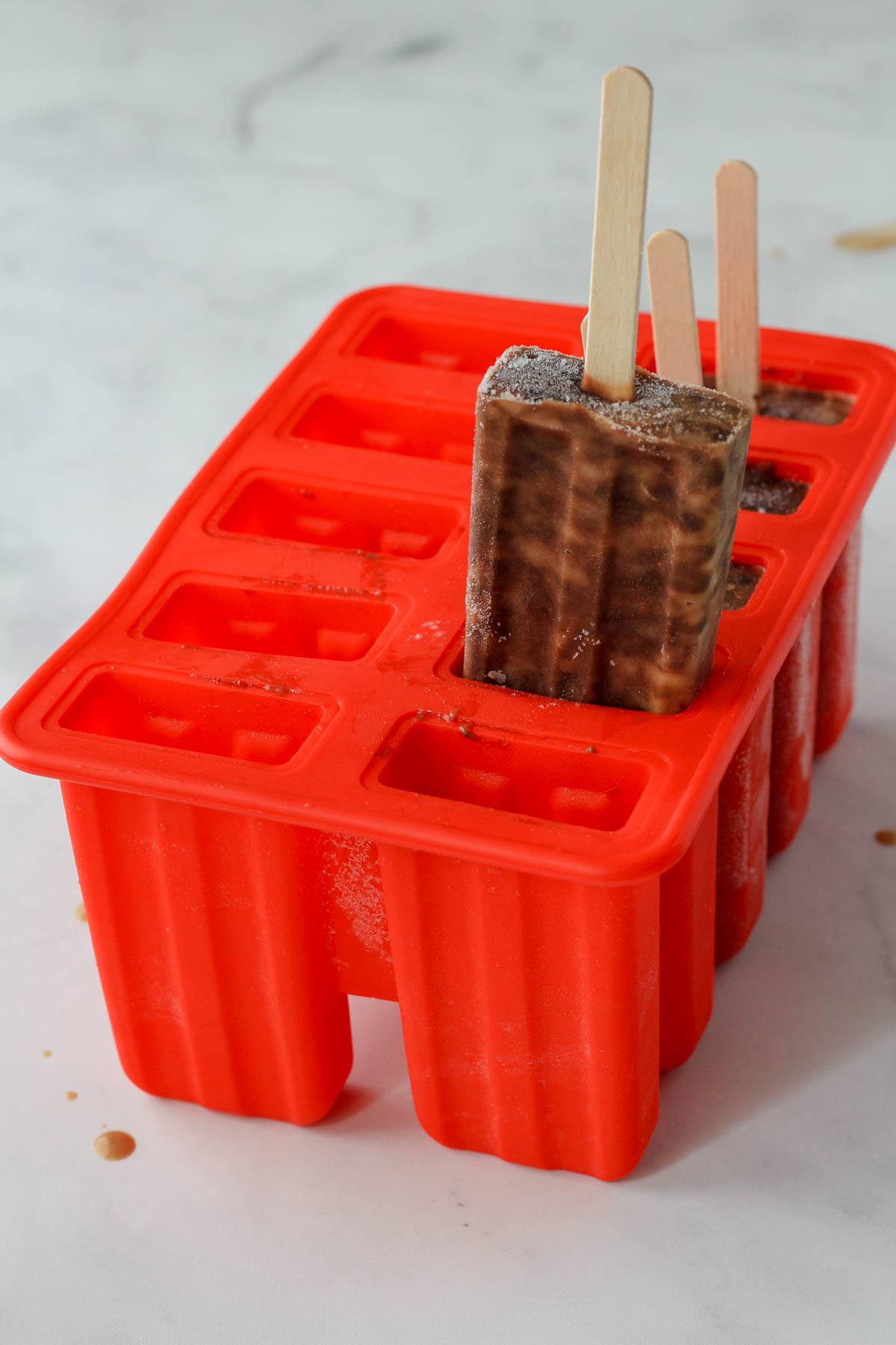 This just might be the hardest part of this no-bake recipe and why I always recommend taking all popsicles out once they are frozen and keeping them in a freezer-safe bag or box so you don’t have to take one out at a time every time a craving hits.