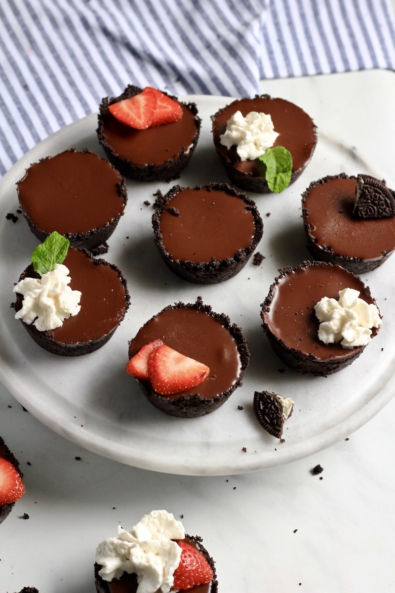 • Ultra-rich. From the Oreo cookie crust to the creamy chocolate ganache filling, these ultra-rich chocolate tarts are a decadent dessert!