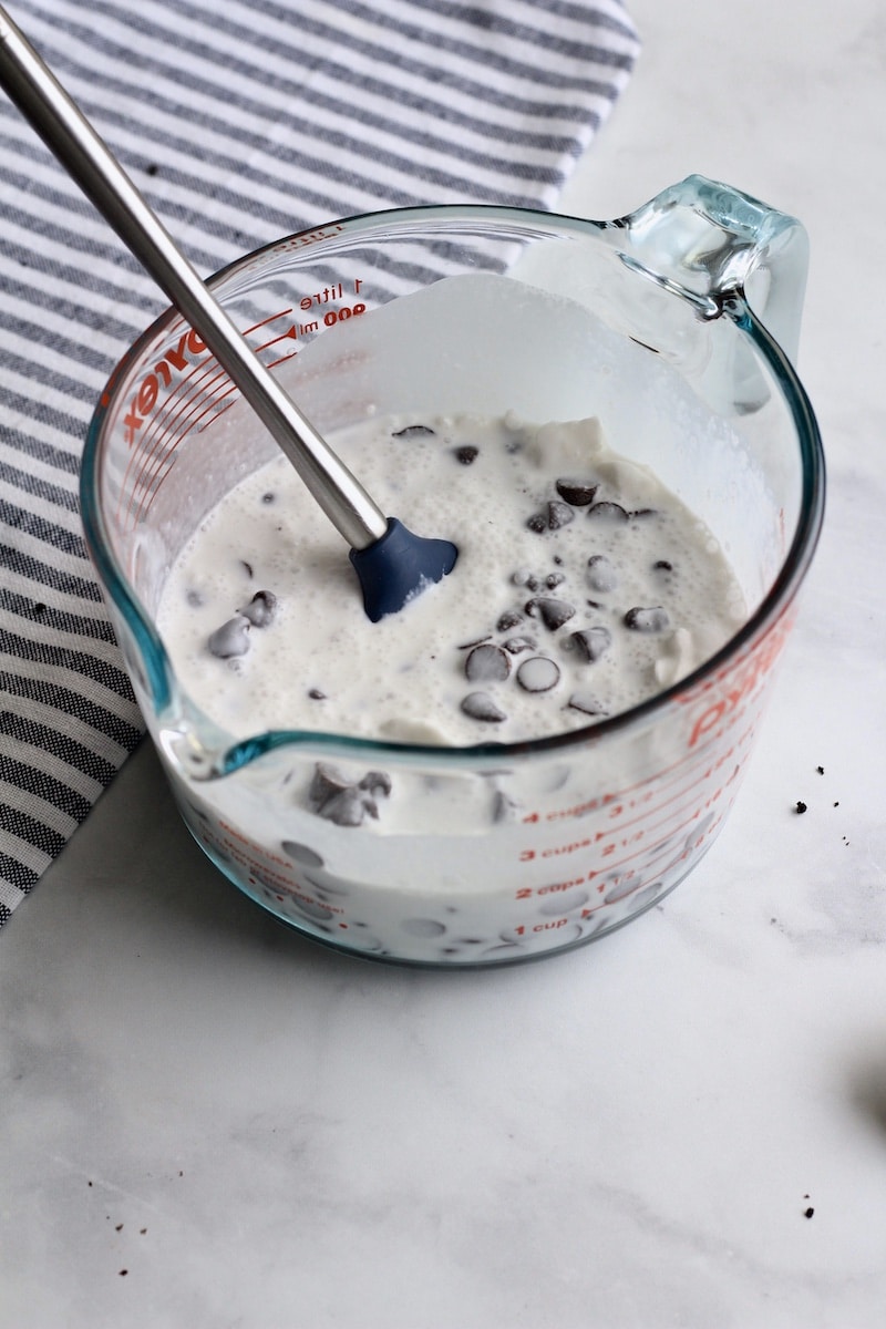 7. In a microwave safe bowl, heat coconut cream and chocolate until melted (about 45 seconds).