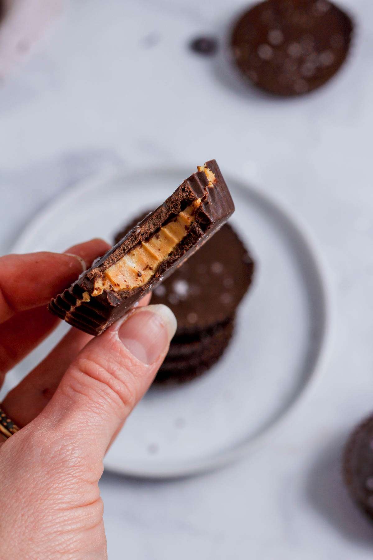 - Plant-based chocolate– Sub your favorite plant-based chocolate for the exterior of this delicious peanut butter cup. I used a dark chocolate for added flavor.